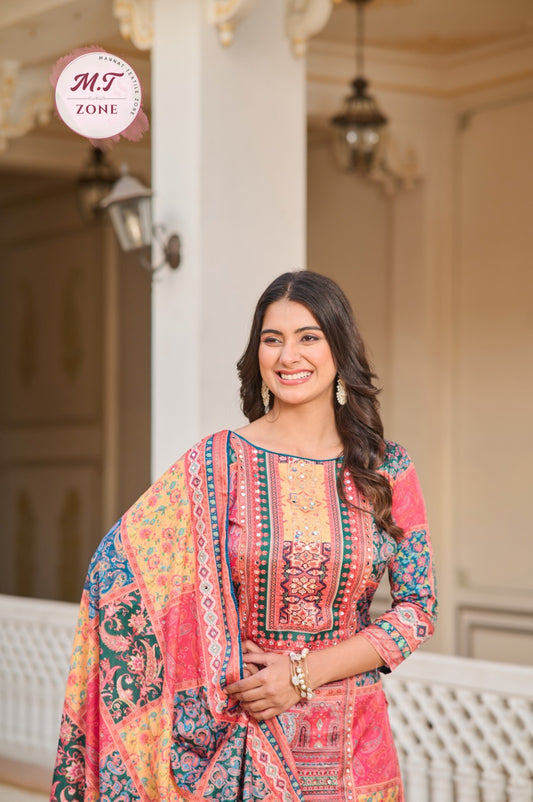 Mannat Heavy French Crape Women's Designer Suit with Heavy Mirror Work