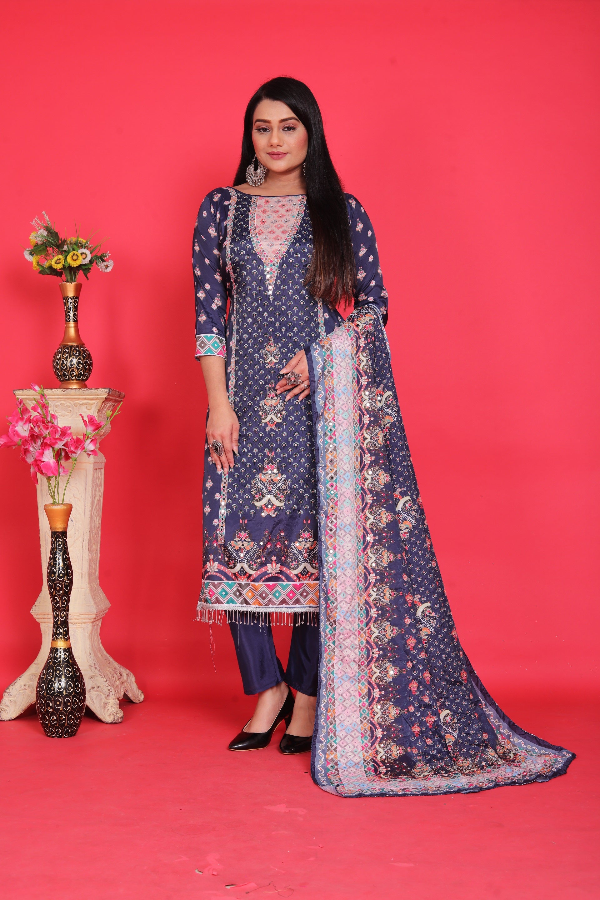 Mannat Heavy French Crape Women's Designer Suit E1 with Heavy Mirror Work