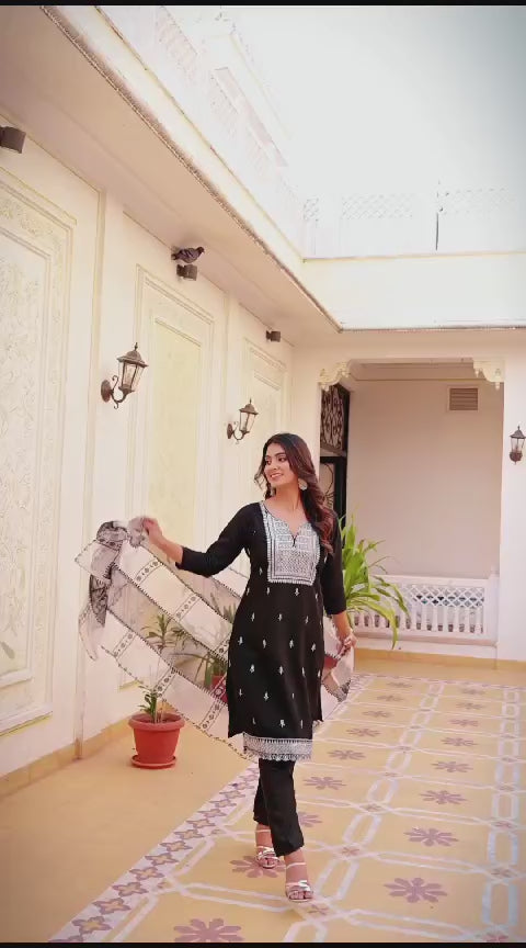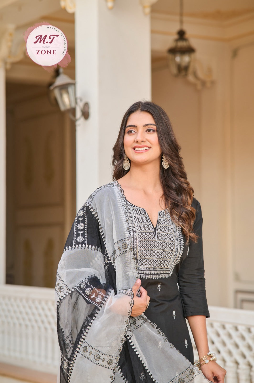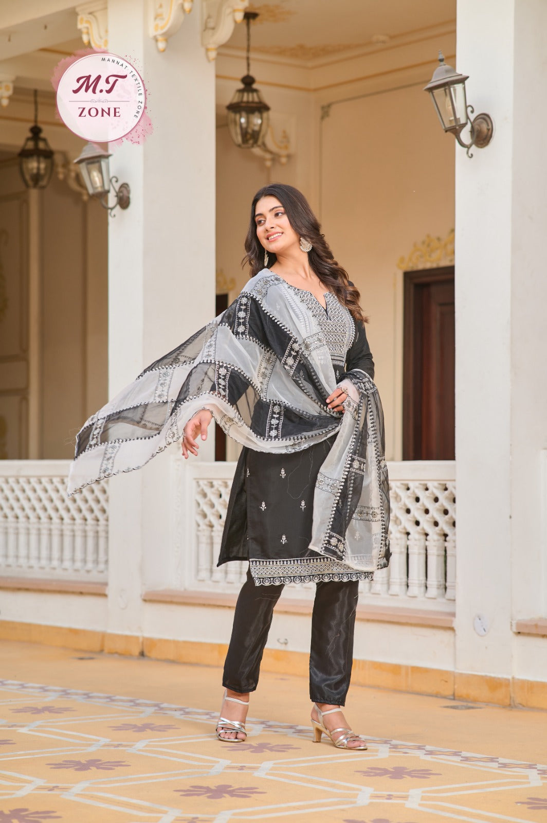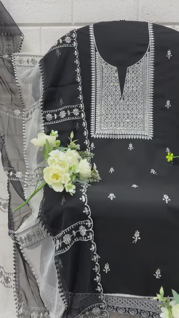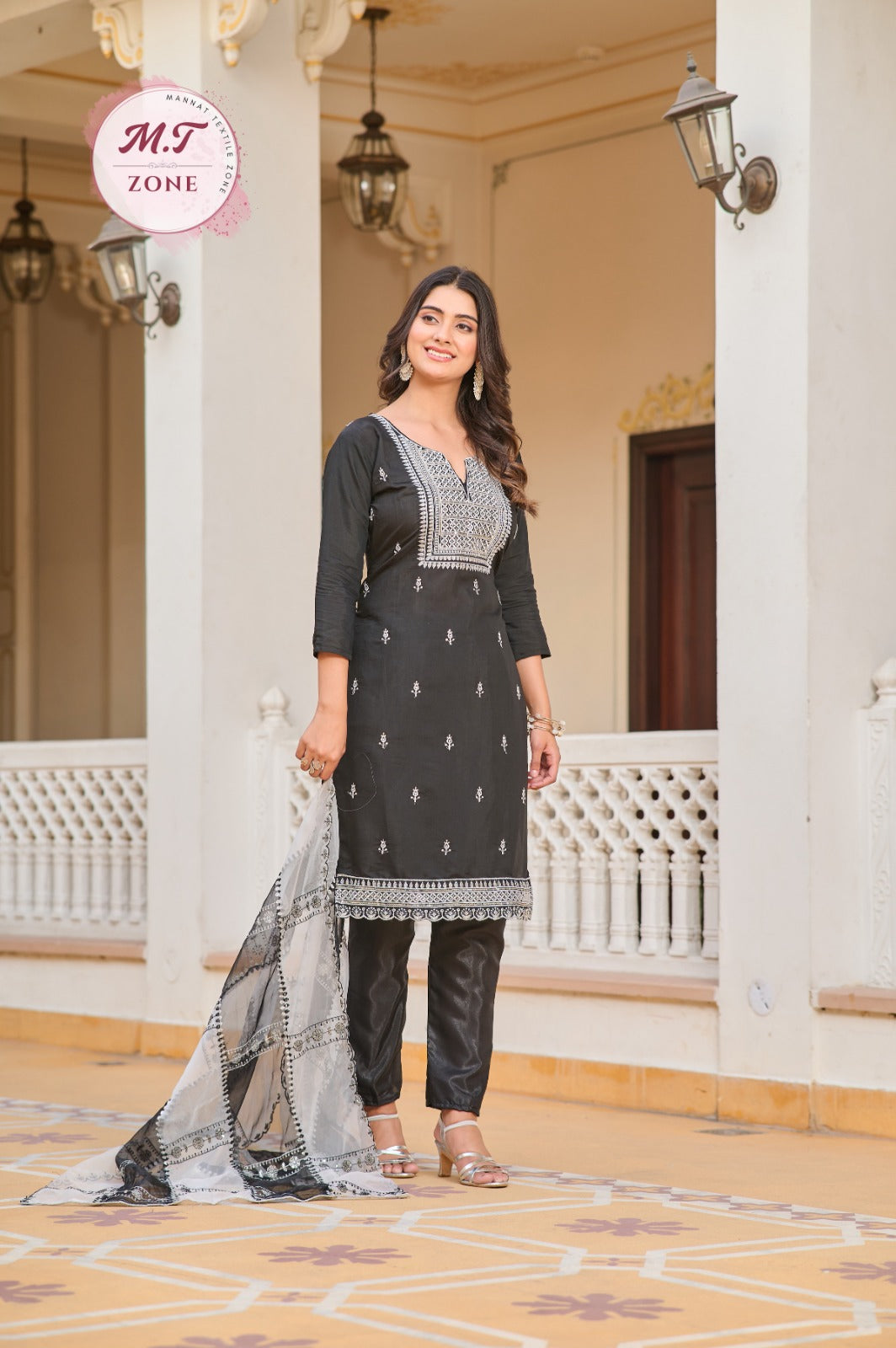 Black Roman Silk Women Designer Suit With Heavy Thread Work