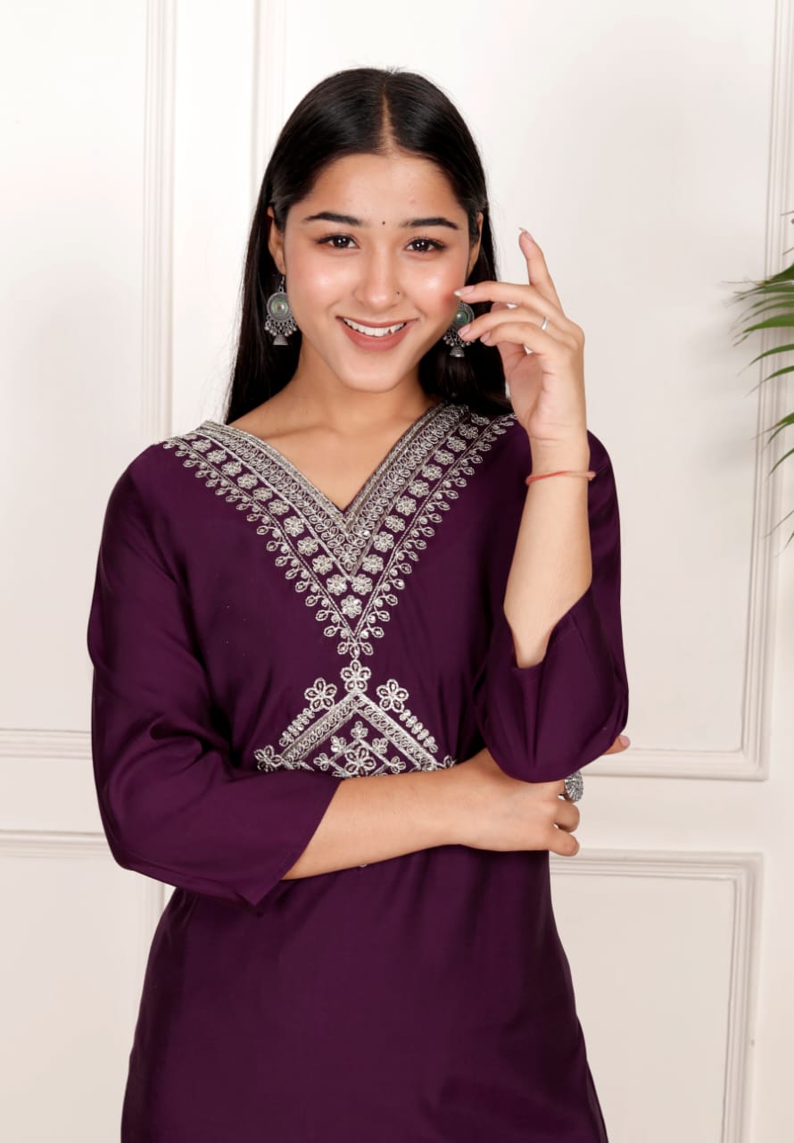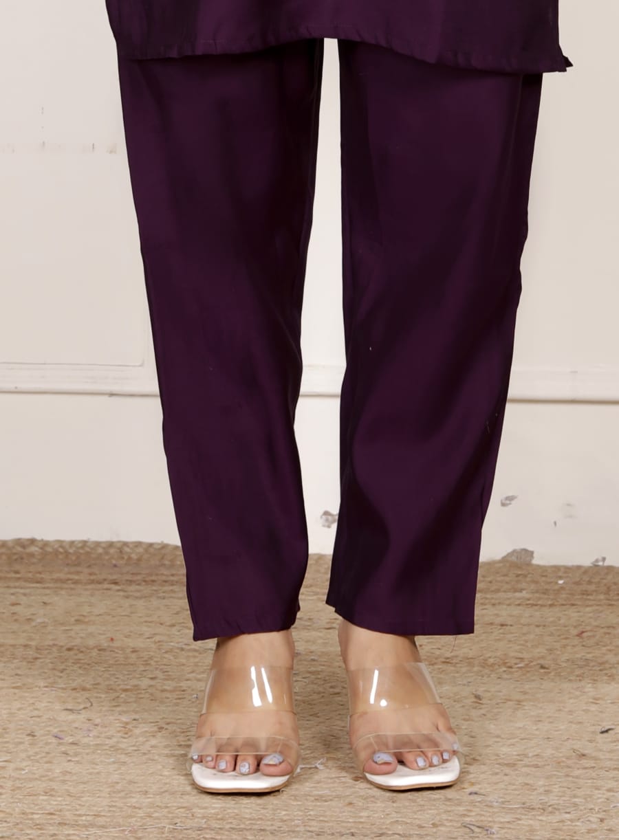 Wine Roman Embroidery Co-Ord Set